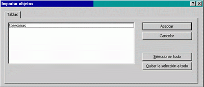 Selecciona la tabla , y haz clic sobre "Aceptar".