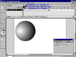 Abramos un nuevo documento y vamos a colocar en el layer el nombre DOS FORMAS, en el frame (fotograma) uno dibujaremos una bola como vemos a continuación: